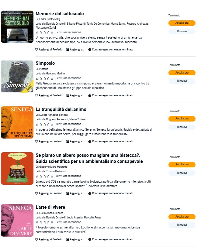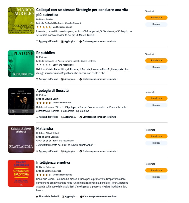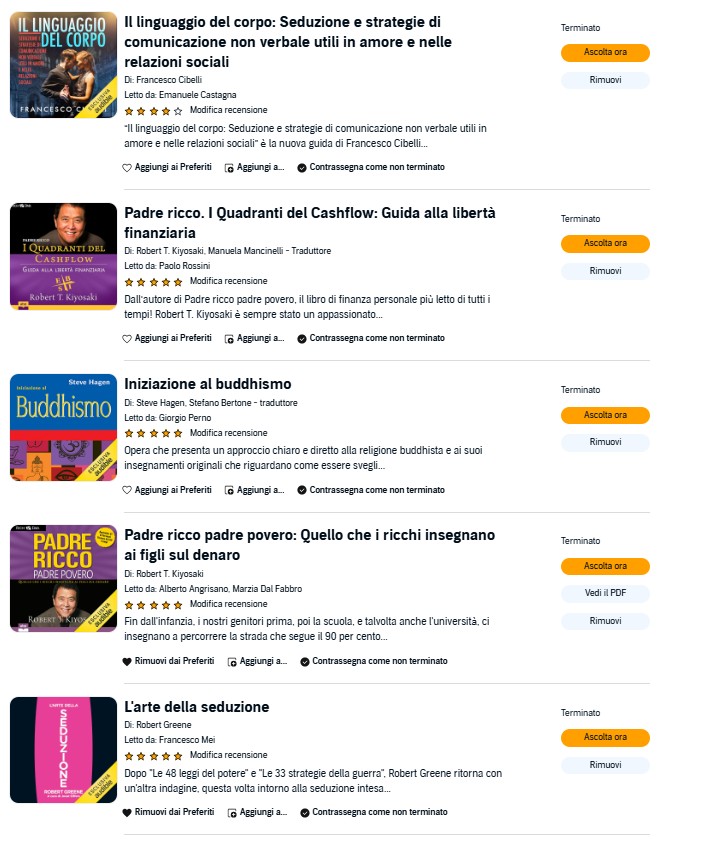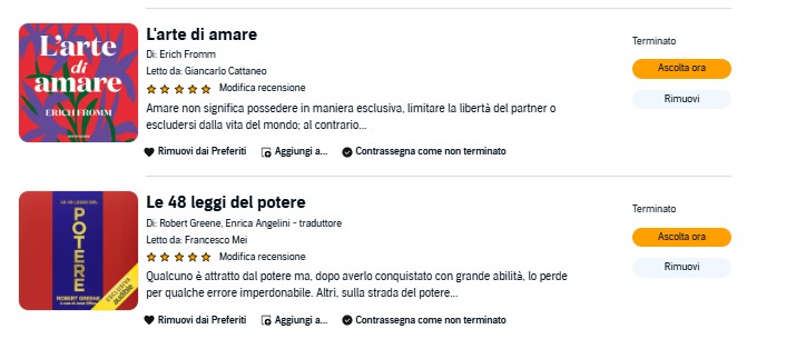 Libri che ho finito di Audible (non mi piace leggere cartaceo hahaha, mi piace ascoltare, se no mi annoio):